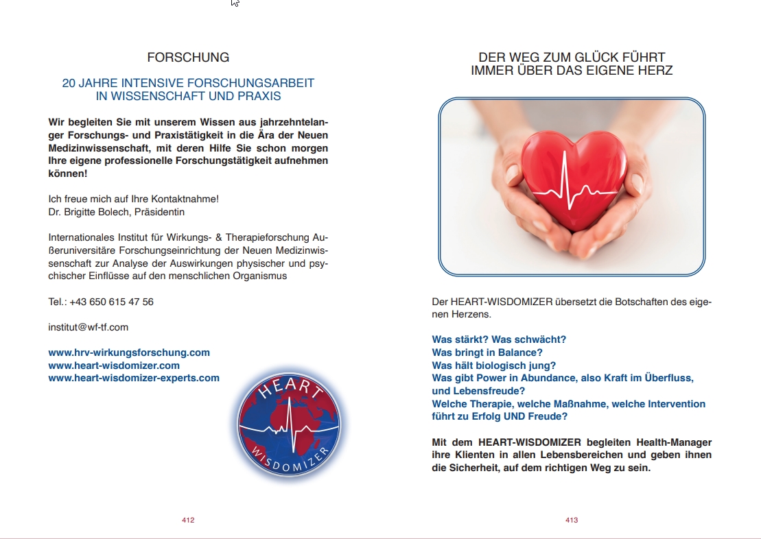 Mit diesem Buch, in Verbindung mit den Auswertungen des Herzschlags, ist es jetzt gelungen, wissenschaftlich fundiert den Erfolg oder Misserfolg einer Therapie aufzuzeigen.
